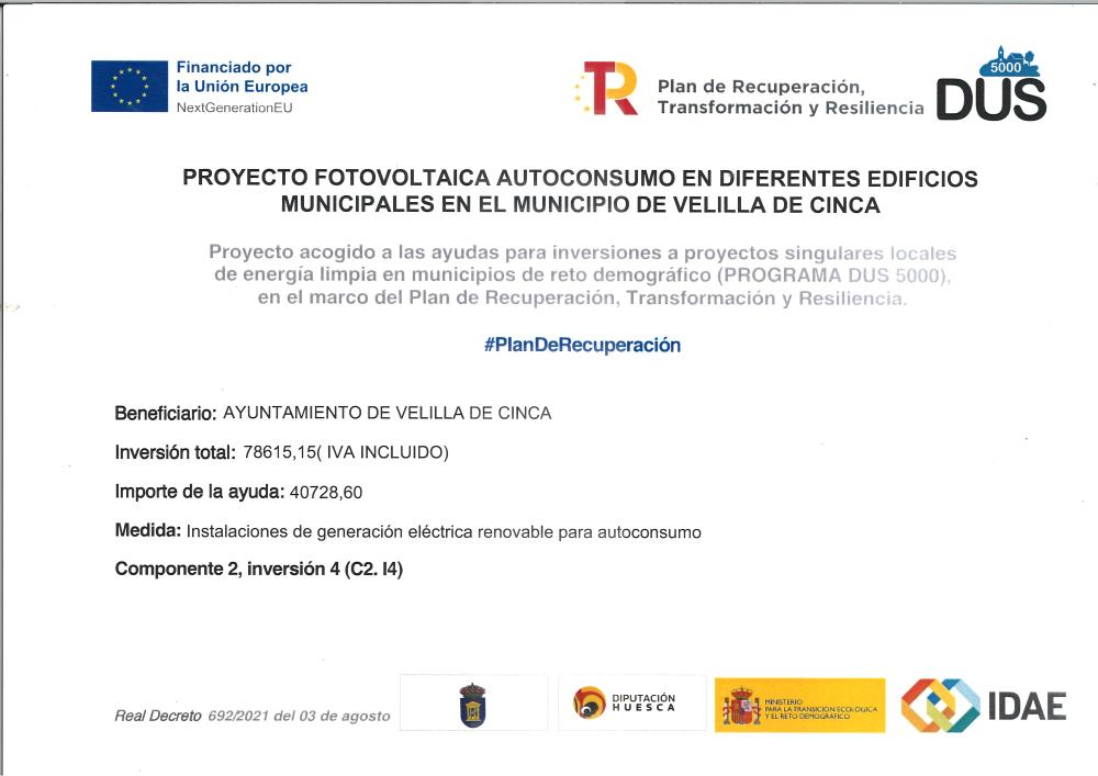 PROYECTO FOTOVOLTAICA AUTOCONSUMO EN DIFERENTES EDIFICIOS MUNICIPALES EN EL MUNICIPIO DE VELILLA DE CINCA